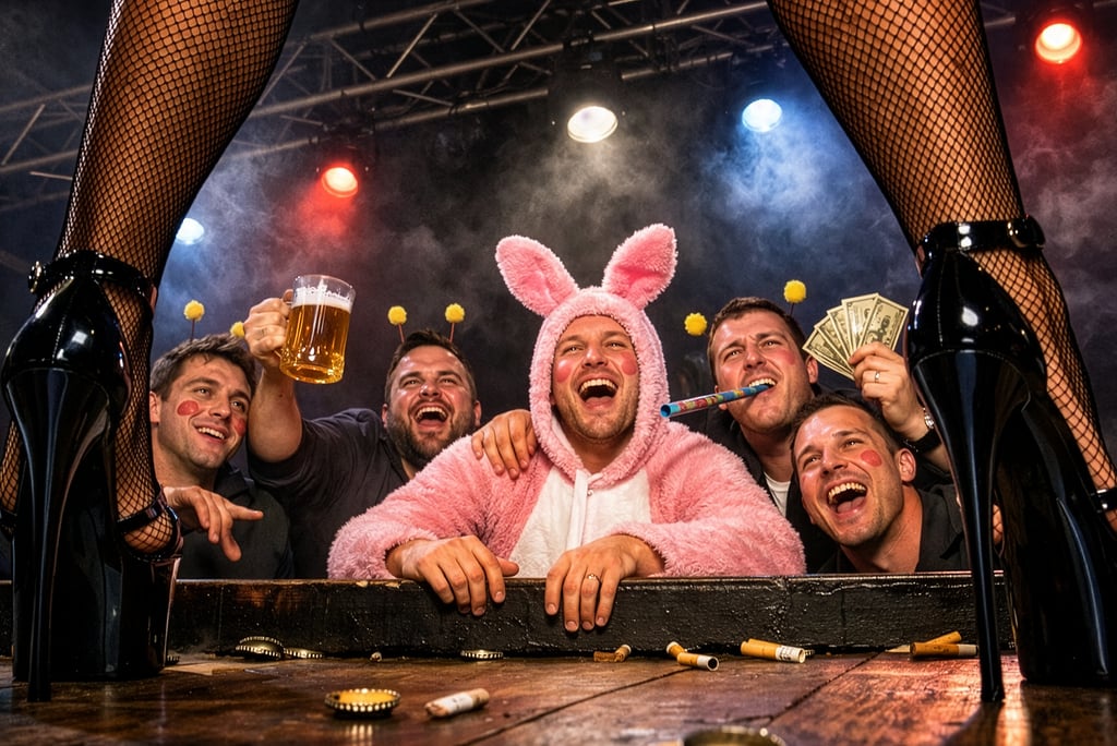 Ich hatte bereits für einen bekannten Spirituosenhersteller diverse Projekte fotografiert, als er mich um Ideenvorschläge bat. Er wollte sein Produkt im Zusammenhang mit dem Thema Junggesellenabschied bewerben. An dieser Stelle: Rückt nie unbezahlt mit euren Ideen raus. Ich habe da echt Lehrgeld zahlen müssen, denn nach meinem Vorschlag hörte ich nie wieder von der Firma. Ich fand allerdings später meine Idee, von deren Marketingabteilung grottenschlecht umgesetzt in diversen Kampagnen wieder.