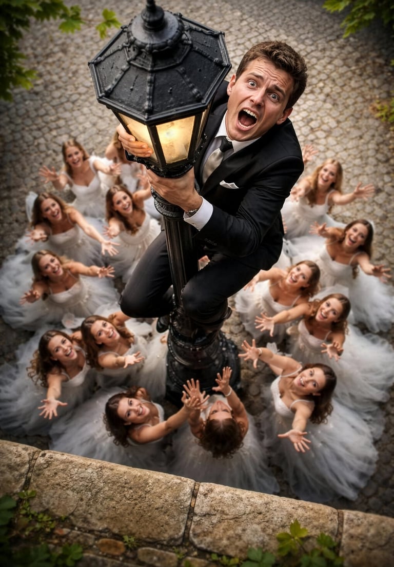 Auch die nächste Motividee entstand aus dem Nichts, ohne Vorgeschichte, einfach so. Vermutlich wäre das Projekt schon während der Umsetzung gescheitert, in Gestalt eines wütend den Feuerlöscher schwingenden Forstbeamten. So erspart mir die KI Casting, Location Scouting, Kostümkauf und eine Anzeige wegen groben Unfugs.
